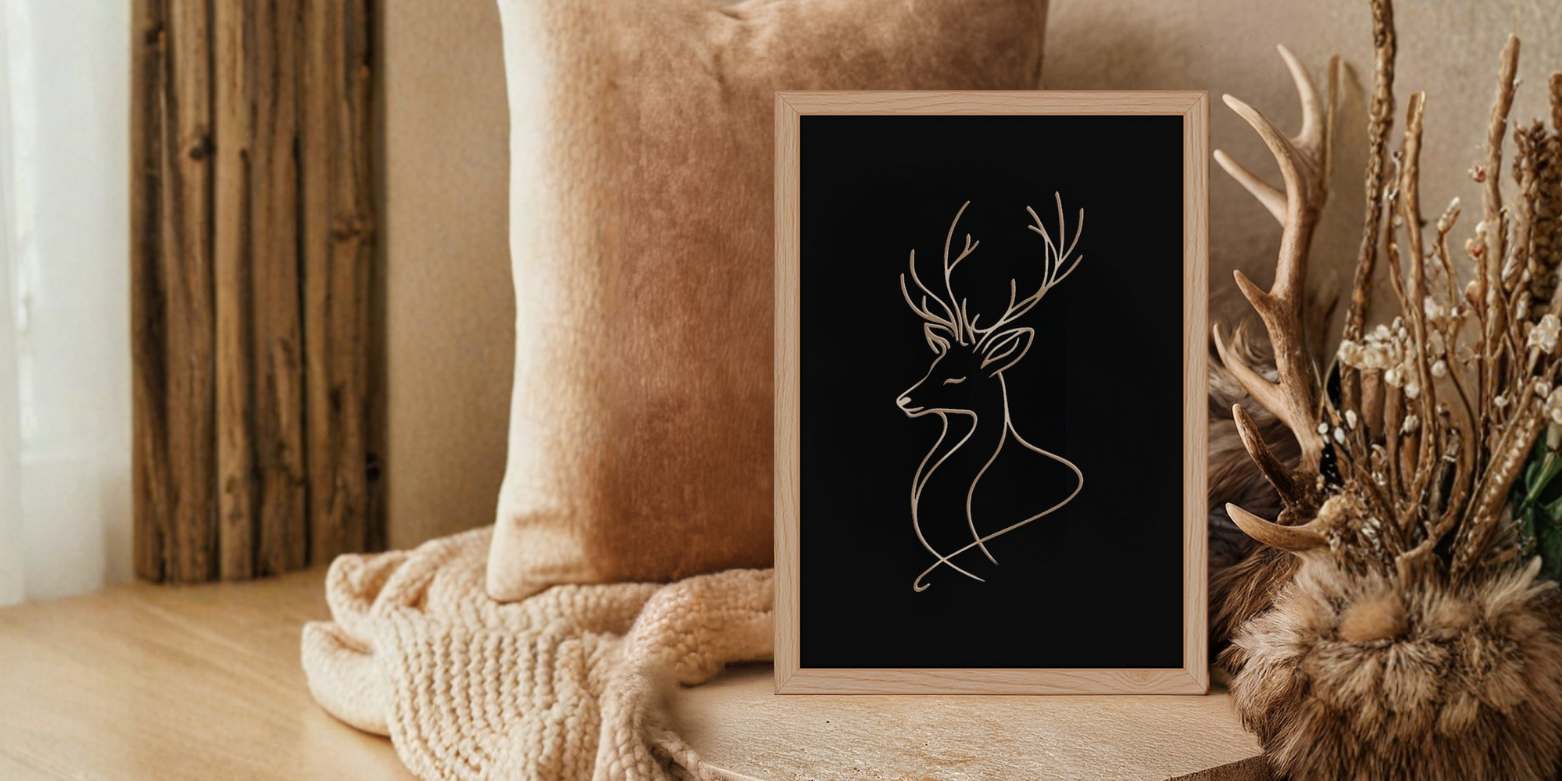 Geef je interieur nét dat beetje extra met dit handgemaakte houten lijstje met fluweelzachte achtergrond. De minimalistische hert-illustratie is met zorg in het hout gegraveerd en zorgt voor een subtiel reliëf met een ambachtelijke uitstraling.